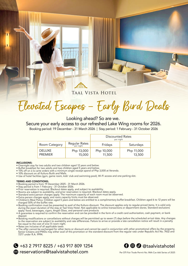 For our guests, take a chance on these sensational offers that involve our functions, dining and room accommodation exclusively at Taal Vista Hotel, Tagaytay City.